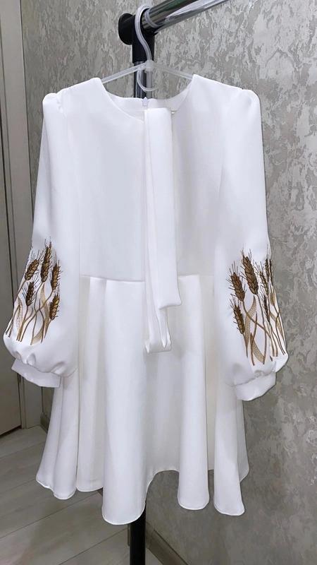 🧡В наявності 🧡 Супер НОВИНКА Нарядне і ніжне плаття із вишивкою Колоски Якісна тканини Барбі Є поясок, на рукавах манжети, ззаді на замочку КОЛІР МОЛОЧНИЙ заміри:довжина/рукав від плеча, пог 146-75/51/37