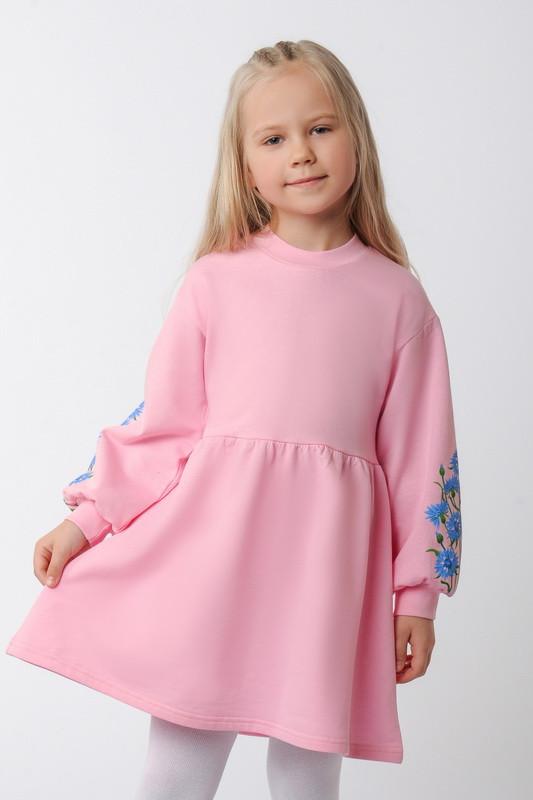 Зручна, тепла сукня для дівчинки. Сукня виконана з м'якого яскравого та якісного трикотажного полотна "Футер з начосом" та прикрашена накатом. Футер с начосом - трикотажне полотно, виготовлене з 100% бавовни. Полотно дає усадку при пранні. Підходить для повсякденного використання в прохолодну пору року. Полотно: футер з начосом. Склад: 100% бавовна. Правила догляду: вироби перуть в режимі "ручного" або "делікатного" прання при температурі до 30°С.