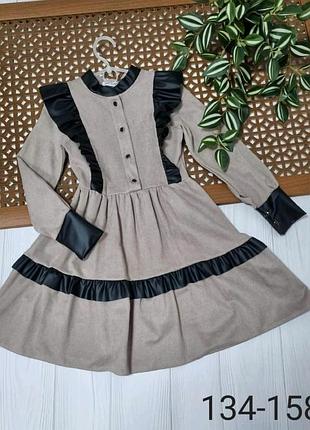 ✅️В НАЯВНОСТІ 💋НОВИНОЧКА Стильна і модна сукня тканина замш діагональ в поєднанні з еко шкірою рукавчик застібається на ґудзик РЕКОМЕНДУЮ 👌 146(1 шт)-довжина 79,рукав 53,пог 34 152(1 шт)-довжина 82,рукав 56,пог 35 158(1 шт)-довжина 88,рукав 57,пог 36 +-2 см Ціна 940 грн Дитячий одяг