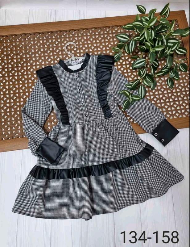 ✅️В НАЯВНОСТІ 💋НОВИНОЧКА Стильна і модна сукня тканина костюмка в поєднанні з еко шкірою рукавчик застібається на ґудзик РЕКОМЕНДУЮ 👌 134(2 шт)-довжина 70,рукав 51,пог 32 140(1 шт)-довжина 75,рукав 52,пог 33 146(1 шт)-довжина 79,рукав 53,пог 34 152(2 шт)-довжина 82,рукав 56,пог 35 158(2 шт)-довжина 88,рукав 57,пог 36 +-2 см Ціна 940 грн Дитячий одяг