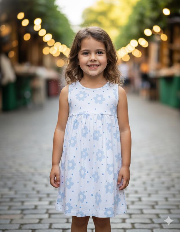 ✨ Ищете идеальный наряд для жарких дней, который будет максимально удобным и милым? Это хлопковое платье – воплощение летней свежести и простоты! 👗 Особенности модели: Цвет основы: Чистый, свежий белый. Принт: По всей поверхности платья рассыпаны нежные голубые цветы (ромашки) и мелкие голубые горошины/точки. Такой принт очень легкий и воздушный, напоминает о безоблачном небе. ☀️ Фасон: Верх: Классический летний сарафан, без рукавов, с круглым вырезом. Юбка: Свободная, расклешенная от завышенной талии, которая собрана в мягкие складочки. Такой крой дарит максимальную свободу движениям и очень комфортен в жару. Силуэт: А-силуэт, не сковывает и не прилипает к телу. 🌿 Преимущества: Материал: Изготовлено из 100% хлопка. Он мягкий, гипоаллергенный и идеально подходит для нежной детской кожи. Идеально для лета: Легкое и "дышащее", в нем не будет жарко даже в самый зной. 🌡️ Универсальность: Отлично подходит для игр во дворе, прогулок🫧 Практичность: Легко стирается, быстро сохнет и не требует особого ухода. 🎁 Состояние: Отличное, чистое, без пятен и дефектов. Принт яркий. Готово к новым летним приключениям! Подарите своей малышке комфорт и очарование в этот солнечный сезон! ➡️ Размер: на 5-6 лет 💌 Пишите! Сделаю замеры, чтобы платье подошло идеально. 📦 ✨ Лето, солнце, цветы! ✨