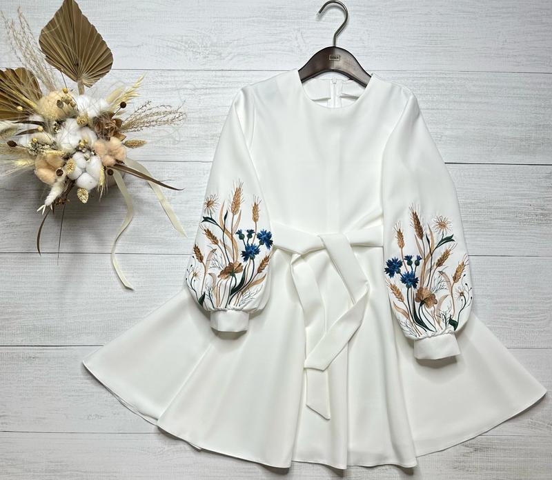 Гарна сукня для дівчинки Тканина якісна костюмка з напиленням На рукавах вишивка Пояс в комплекті ЯКІСТЬ ЧУДОВА !!! РЕКОМЕНДУЮ!!! 140-1 146-1 Довжина/ПОГ/рукав 140-75/36/49 146-78/37/51
