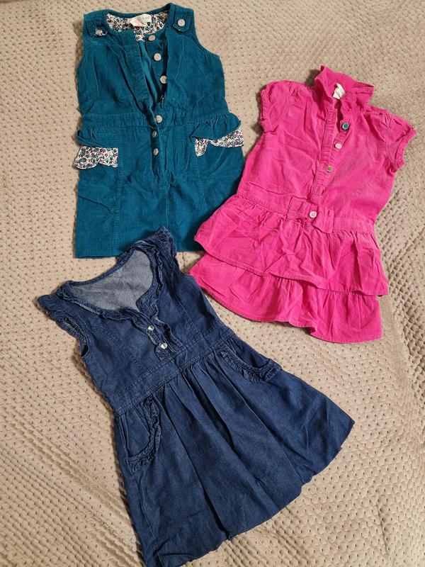Плаття у гарному стані, носила донька у садочок. Два велюрових і одне тонкий джинс. Заміри на фото. Продаж 1 лотом, ціна вказана за всі.