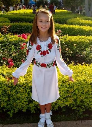Сатинова вишиванка Handmade Вільний фасон, можно спускати плечі, рукавчики на резиночці, розрізи з боків, якість шикарна розмір універсальний Платье вышиванка бисером. Шилось по заказу, верхняя юбка и пояс идут в комплекте с платьем - платье вышито бисером. Handmade - Стильная современная вышиванка бисером, ручная работа. Вышивка бисером ручная работа. Вышита чешским бисером. Платье просторное на 7-9 лет сядет прекрасно, на вырост под юбку или вышитый пояс. Одета дважды на праздник. Длина 75см. Вільний фасон, можно спускати плечі, рукавчики на резиночці, розрізи з боків, якість шикарна розмір універсальний