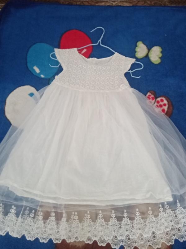 дуже гарна, святкова сукня для дівчинки, стан ідеальний, понизу сукня розшита мереживом. довжина 68, груди 34. пише розмір 140, але маломір дивіться заміри, ми носили на 128-134, колір айворі