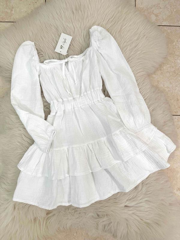 Стильна та ніжна сукня для дівчаток М'яка, легка та приємна до тіла. Пояс на широкій резинці. Тканина - муслін Заміри: 134 р. довжина від плеча - 69 см, напів-обхват грудей - 30 см, рукав від плеча - 49 см. міст