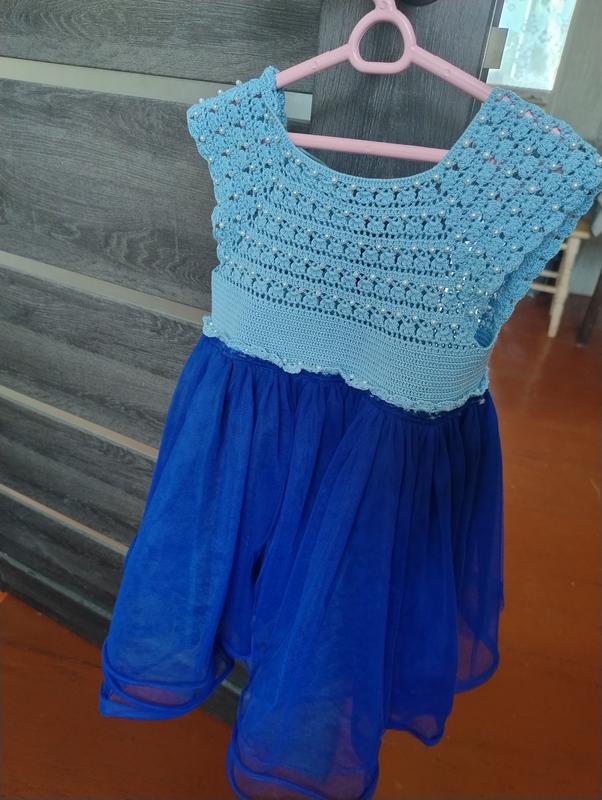 Сукня для принцеси. В'язананий верх з намистинами в поєднанні з фатиновою пишною спідничкою створює неймовірно гарний образ.