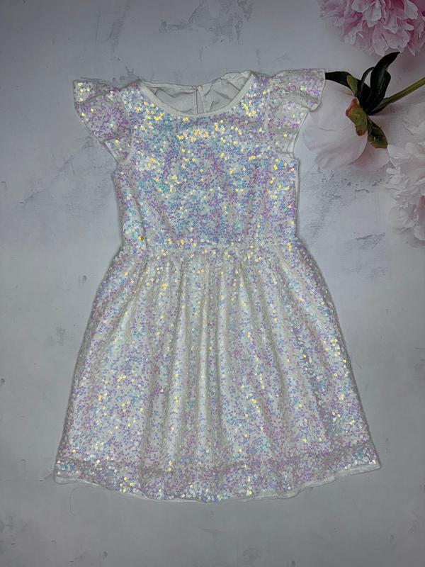 Біле плаття в паєтки Стан ідеалу 🏷️H&M 7-8 лет/128 Довжина 71 (27). Пог 35