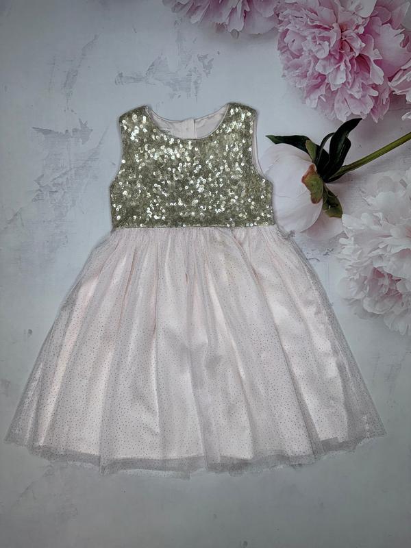 Платье с блестящим напылением и пайетками на груди. Отлично подойдет для праздника Состояние супер 🏷️Monsoon 2-3 года/98 Длина 63(20). ПОГ 28