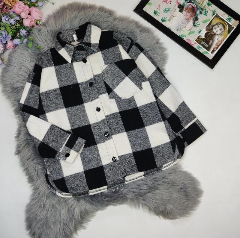 Стильна та тепленька сорочка тканина шерсть дуже гарної якості заміри -довжина/ пог/рукав від горловини 140-65/50/60 146-66/52/62 152-67/53/63