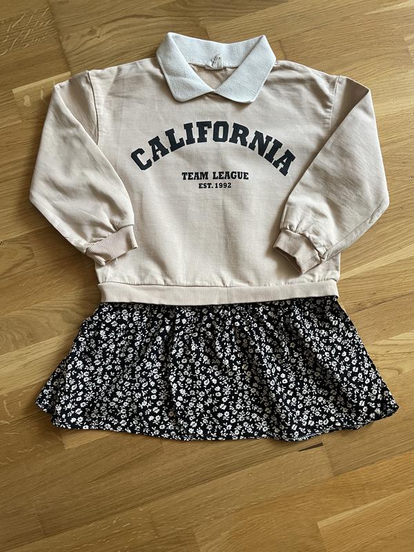 Дуже класне плаття-реглан для дівчинки. Розмір 5 років (110 см). Плаття в ідеальному стані, без плям, слідів носіння. Одягали кілька разів. Виробник Туреччина. Склад: котон 98%, еластан 2%. Заміри Пів обхват грудей: 36 см; Довжина рукава по внутрішньому шву: 27 см; Довжина плаття: 55 см.