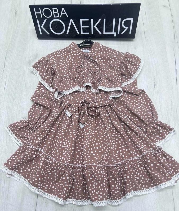 Стильное и модное платье для девушек. Платье украшено кружевом. Перчатка на резиночке, в поясе резиночка. Поясок в комплекте. Тканина - супер-софт. пов Замеры: Бежева 140 длина - 71см, полуобхват груди - 39см, рукав от горловины - 66см. 146 длина - 74см, полуобхват груди - 42см, рукав от горловины - 68см. 152 длина - 77см, полуобхват груди - 44см, рукав от горловины - 70см. Темная 152 длина - 77см, полуобхват груди - 44см, рукав от горловины - 70см.