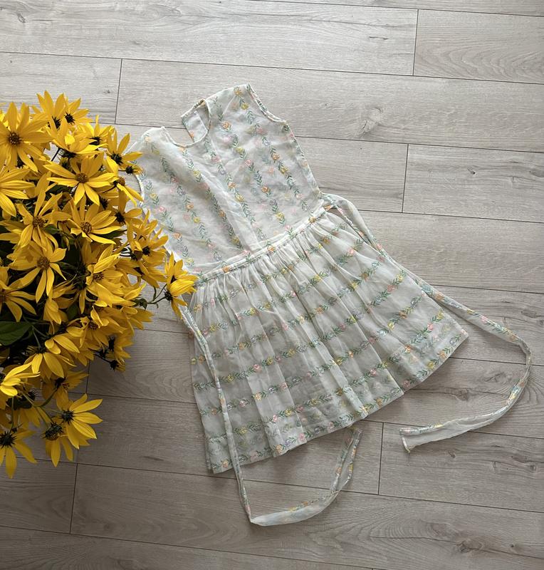Стильна сукня для дівчинки ручної роботи/ Піврозора молочна у Принт квітів/ Підійде на 5-9 років орієнтуйтесь по замірах/ Стилізувати можна навіть з джинсами/ Довжина 79-80 см/ Плечі 35 см/ Пот 34 см/ Довжина шлейфа 97 см/ Поб 80 см/ Знизу 127 см/ Продовження без повернення:
