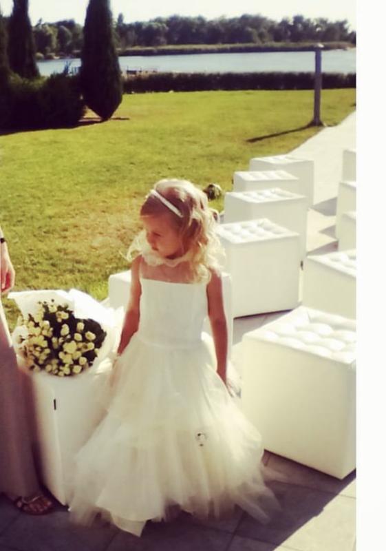 Дитяча нарядна сукня. Можно на 6-9 років дивіться заміри. Але позаду завдяки поясу все регулюється.Також йде блискавка по спинці. Колір: Шампань.Заміри: довжина 96 см , плечі 25 см