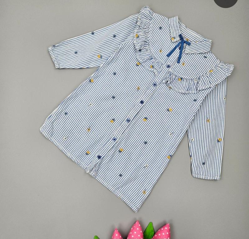 платье-рубашка в полосочку біло-голубу з квіточками, марка Next, на 110 см довжина від плеча 55 см плечі 25 см рукав 38 см пог 33 см