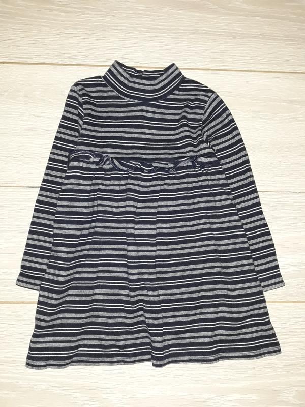 Тепла, фірмова сукня для дівчинки на 1,5-2,0 роки. На спинці застібається на ґудзик. Склад 100% бавовна. Стан відмінний Заміри: довжина по спинці від плеча 44 см. ширина між пахвами 24,5 см, рукав від плеча 31 см, по внутрішньому шву 24 см