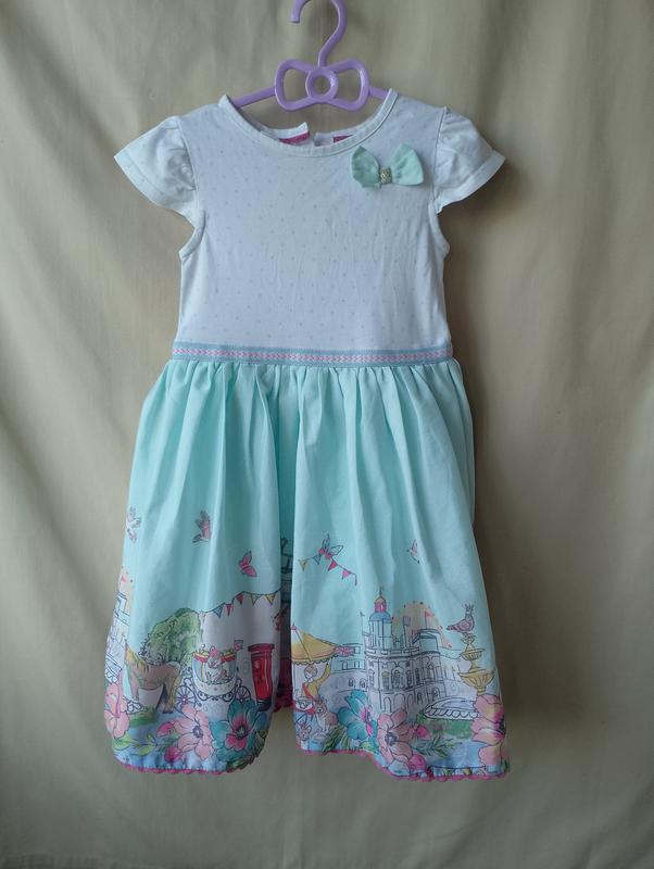 дуже гарна, пишна сукня. є бавовняна підкладка. розмір вказано на 2-3 роки. ширина 26 довжина 63