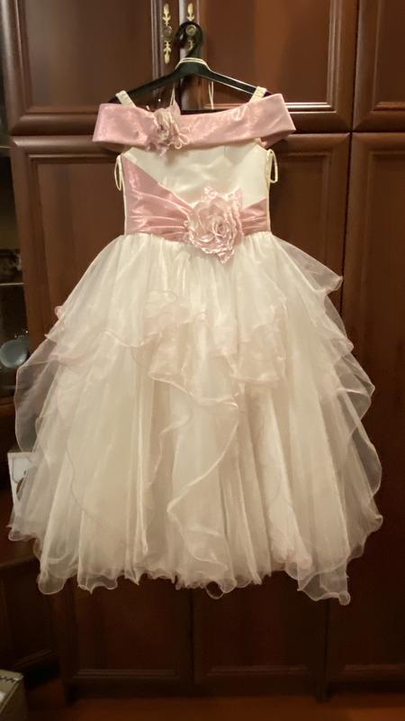 Продам сукню на дівчинку віком 10-12 років, ріст - 1.40, колір - білий з рожевим, матеріал - фатин і атлас.