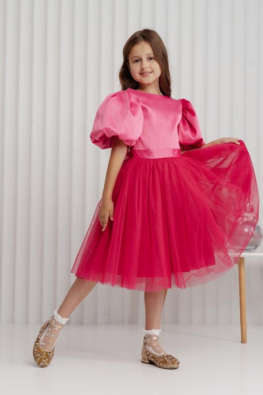Сукня ошатна ярко малинового кольору для красунь на свята. .Атласний верх з шикарним рукавчиком буфом і ніжною спідницею на підкладці з фатіном. По талії поясок.Ззаду на блискавці з V образним вирізом. Рекомендую 👍💞💖💖 Відправляю нова пошта ,укр пошта ,шафа,розетка, наложеним по предоплаті ,на карту