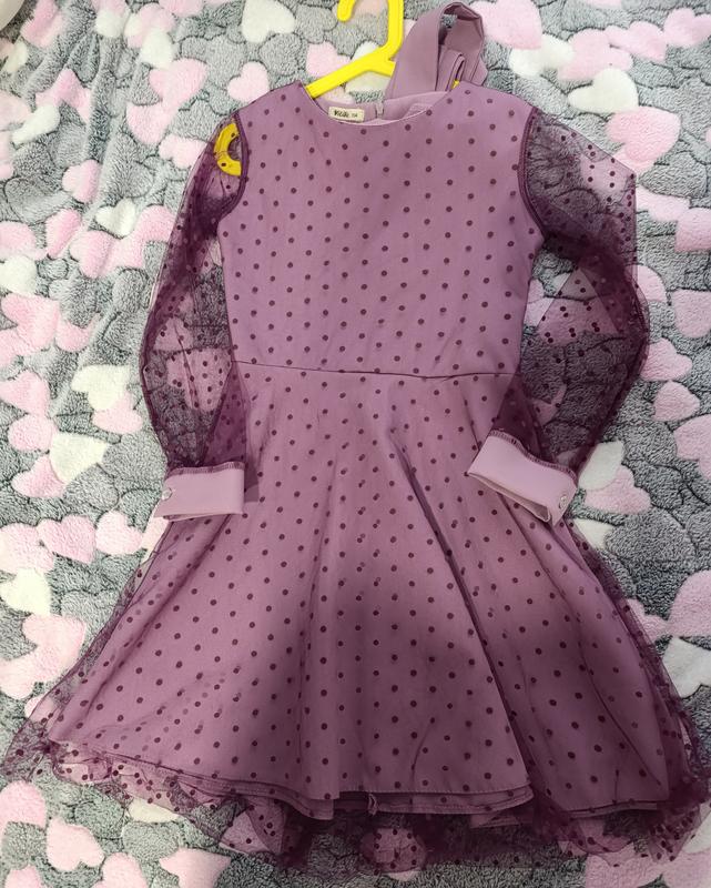 Платье, было одето один раз. Состояние нового с поясом. На 10 лет рост 134. Фиолетовый цвет.