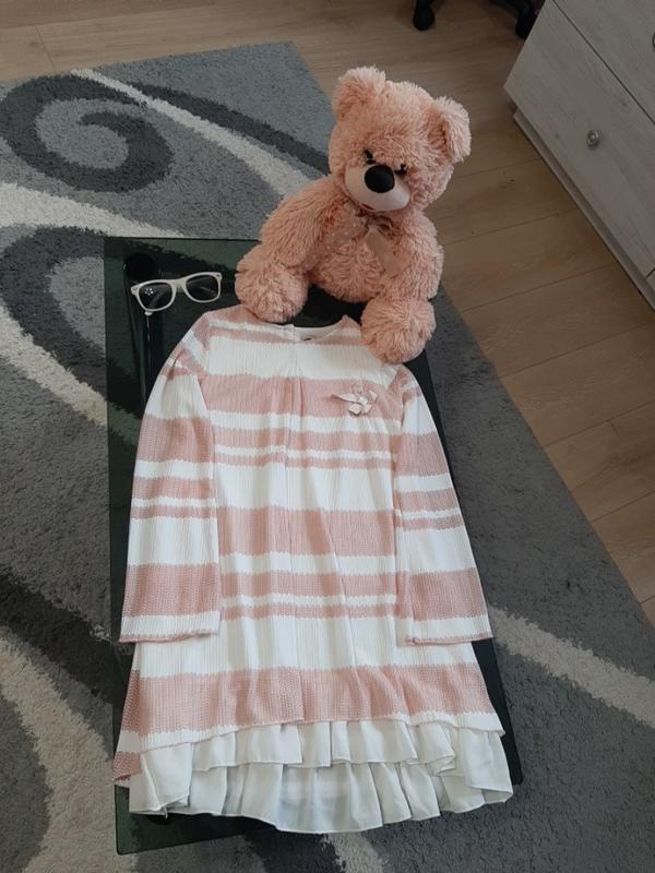 Красива, багатошарова сукня. Колір білий та ніжно рожевий. Виглядає по святковому. Придбана в Італії, дуже якісна. Довжина сукні - 70 см. довжина рукава - 55см.