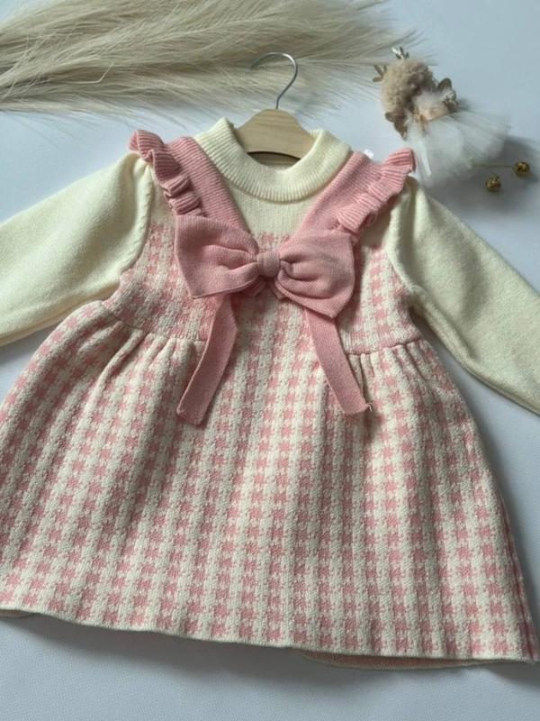 Тканина машинна в'язка Прикрашена красивим бантиком на булавці На плечиках рюшики Виміри 100-Довжина 41 см Рукав 29 см пояс 25*2 см 110-Довжина 44 см Рукав 31 см пояс 26*2 см 120-Довжина 51 см Рукав 36 см пояс 28*2 см 130-Довжина 53 см Рукав 38 см пояс 30*2 см