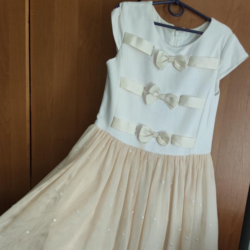 Очень красивый, и праздничный наряд для девочки Платье с бантиками, цвет беж Подойдет на 9-11 лет Обращайтесь, пишите!)
