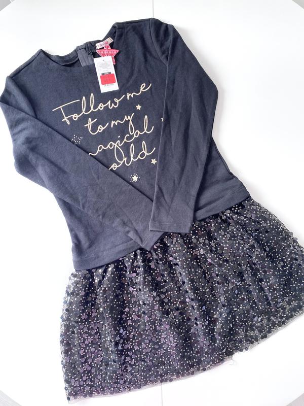 Рост 158 см Верх двуніть, букви золоті виблискують Юбка на підкладці котон, паєтки пришиті - колір чорний та золото Довжина 77 см Пог 39,5 см Пот 38 см