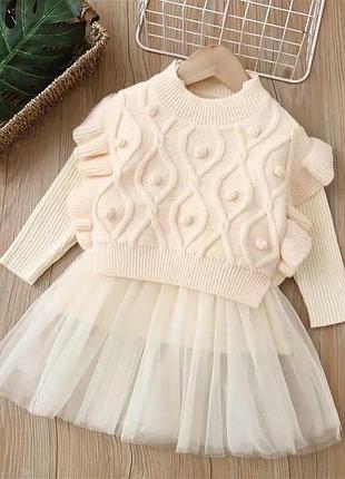 🫶це любов з першого погляду! залишила для своєї донечки😍 👑сукня!красу якої не передати словами… 👑вʼязка акрил,спідничка вʼязка та ще фатін (не жорсткий) красиво тримає форму 👑 іде в комплекті жилет який можна використовувати як окремо так і разом з сукнею 👑Відмінна якість!рекомендую Розмір в наявності 90-5 100-5 110-5 120-5 130-4 Заміри 👑90- рукав 29см,довжина 50см 👑100- рукав 34см,довжина 54см 👑110- рукав 36см,довжина 58см 👑120- рукав 38см,довжина 60см 👑130- рукав 40см,довжина 65см !замір однієї ростовки,одного кольору,можлива похибка 1-3см