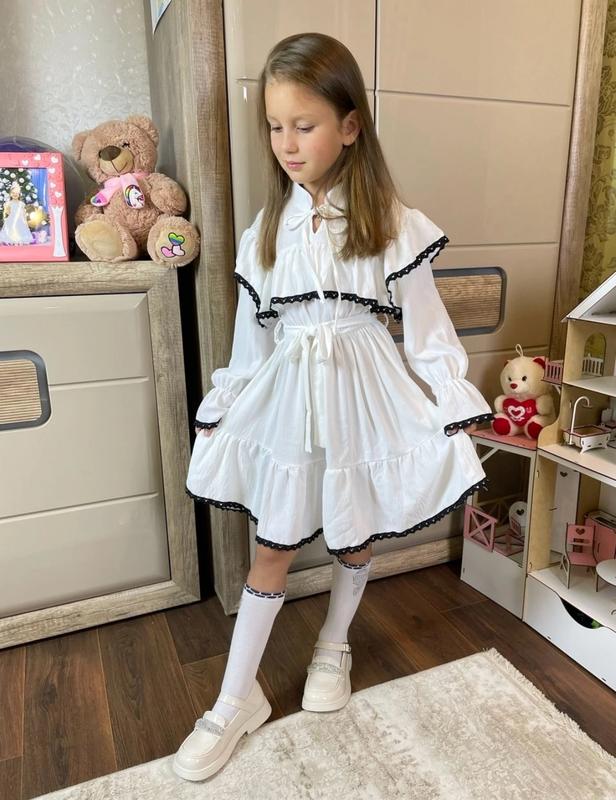 Стильна гарна сукня для красунь 💗 Тканина креп-жатка високої якості + мереживо, в поясі резинка, зав'язується під поясок Заміри: довжина/пог/рукав від плеча 128 - 69/30/46