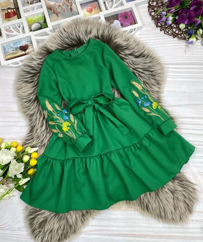 Ніжна сукня з вишивкою для красунь 💗 Застібається по спинці на блискавку, зав'язується під поясок тканина костюмка барбі Заміри : Довжина/пог/рукав від плеча 140 - 74/36/50 - 1 шт