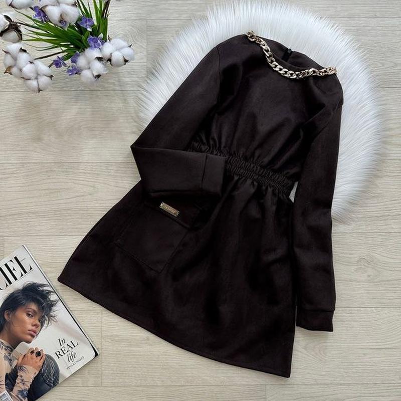 ціна 700 грн Стильова сукня для красунь 🤩 В поясі резиночка 😍 Накладна кишенька 😉 Пришивна емблемка 👌🏻 Застібка- потайна блискавка ⚡️Трендовий ланцюжок🔥🔥🔥 Тканина: замш❤️ Виробник: Україна🇺🇦 ЗАМІРИ +/-1-2см!!! ▪️р.140 довжина 71см/рукав від плечевого шва 50см /ПОГ 35см ▪️р.146 довжина 73см/рукав від плечевого шва 52см /ПОГ 35см ▪️р.158 довжина 78см/рукав від плечевого шва 56см /ПОГ 36см ▪️р.164 довжина 81см/рукав від плечевого шва 57см /ПОГ 37см При оформленні замовлення через кнопку Купити повна оплата, обов'язково уточнюйте наявність розміру Через діалог можливий накладений по передплаті 120 грн