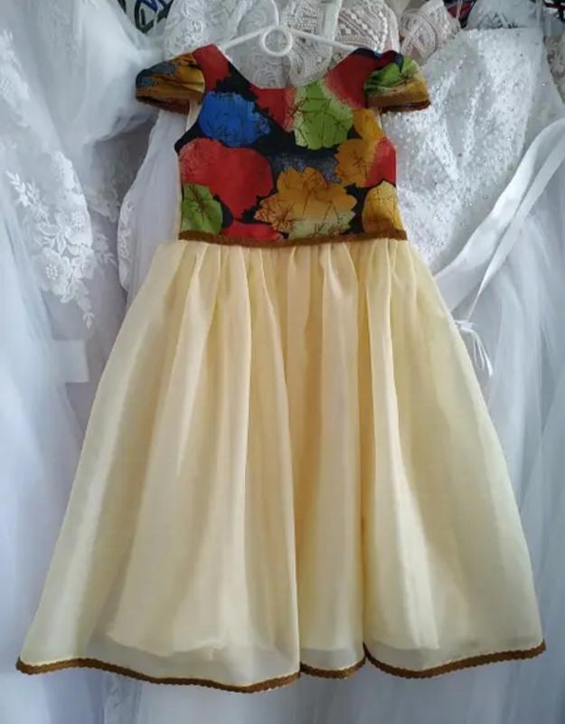 Яркое, красивое и оригинальное платье для девочки 5-7 лет. В наличии платье с длиной 88 см. Подойдет на деток и на 5 лет, так как платье сзади со шнуровкой. Мирки платья, которая в наличии: по груди максимально 66 см, шнуровкой затягивается до 54 см. Платье нигде не давит, объем по груди и по талии Вы можете отрегулировать сами. Талия = 64 см, затягивается до 54 см.