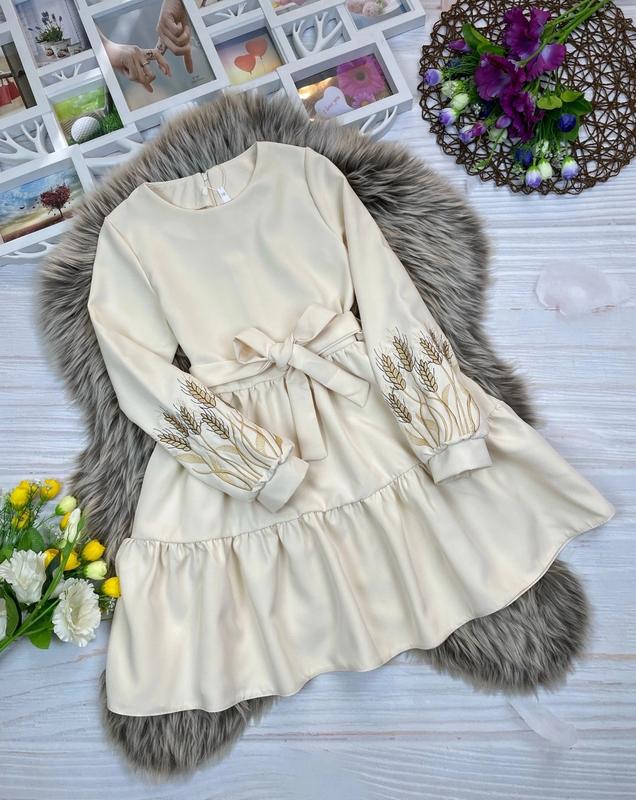 Нежное платье с вышивкой для красавиц 💗 Застегивается по спинке на молнию, завязывается под поясок ткань костюмка барби Замеры : Длина/пог/рукав от плеча 146 - 77/37/53 152 - 80/38/56