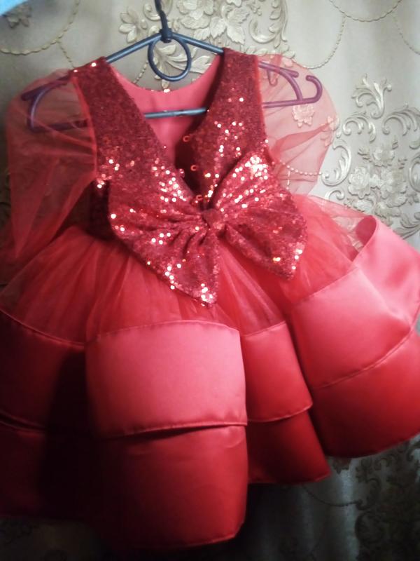 Очень красивое и праздничное платье на девочку 12-18 месяцев (на рочек но можно и на старенькую кроху)обхват груди 53 см. Одевали тоже на день рождения, один раз, состояние идеальный-новая. Заказывали ее новой почтой, индивидуально отшили.