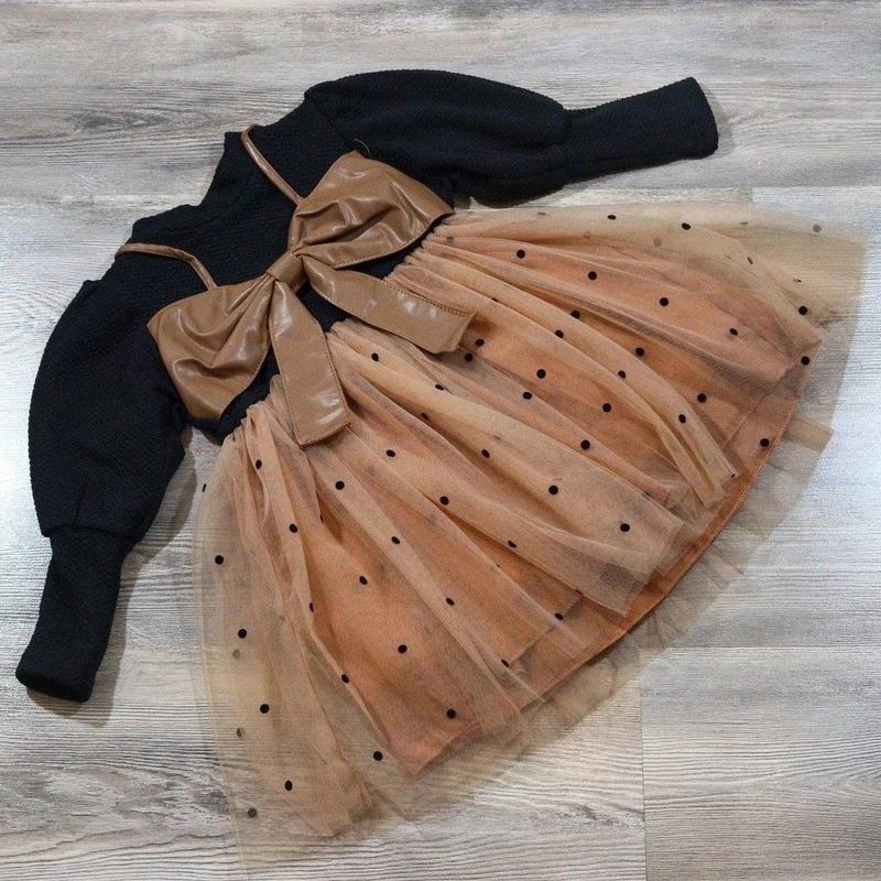 Ніжна сукня з бантом з еко шкіри Верх трикотаж, всередині на плюші Низ 2 шари фатина+підкладка Тепла і ніжна Розміри Заміри 90р-довжина 51см,ширина 30см,рукав від плеча 34см 100р-довжина 55см,ширина 30см,рукав від плеча 37см 110р-довжина 60см,ширина 30см,рукав від плеча 39см 120р-довжина 64см,ширина 32см,рукав від плеча 42см 130р-довжина 68см,ширина 34см,рукав від плеча 44см