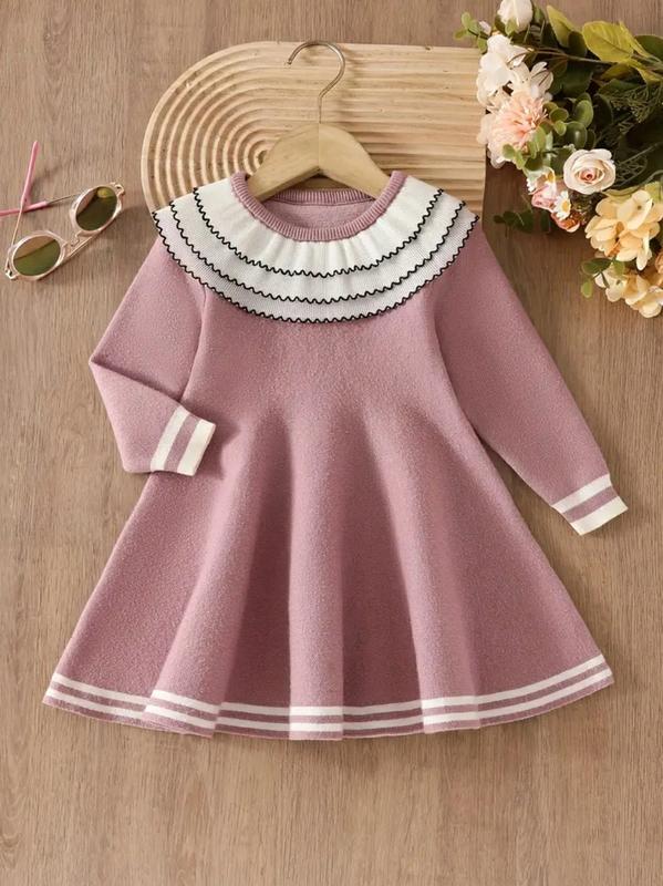 ошатна сукня 🌹 декорована шифоновим комірцем машинна в'язка приємна і м'яка на дотик тканина тягнеться ЗАМІРИ довжина /ширина /рукав від коміра ✅100р 52/32/38 ✅110р 58/33/40 ✅120р 61/35/46 похибка +-1см НАЯВНІСТЬ 100р 6шт 110р 6шт 120р 6шт 2