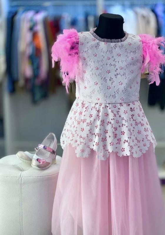Сукня Состоит из топа и юбки Пирья отстегиваются Топ и юбку можно стирать в стиральной машинке Подойдет на размер от 122-134 см 🏷️1100грн Замеры ПОГ- 33 см ПОТ- 32 см L (топа до рюш) - 28 см L (рюши )- 20 см L ( юбки)- 58 см Заколка «Гилочка» 🏷️ 400 грн