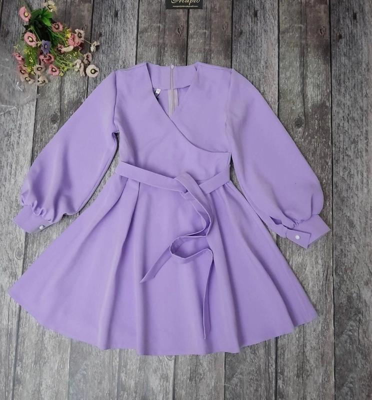 Стильна сукня для модниць По спинці до пояса застібається на блискавку. Спереду на запах. Пояск в комплекті. Тканина- костюмна. Заміри: 140 довжина - 69см, рукав від плеча - 52см, напівобхват грудей - 38см 152 довжина - 79см, рукав від плеча - 57см, напівобхват грудей - 41см 164 довжина - 87см, рукав від плеча - 63см, напівобхват грудей - 45см Мс