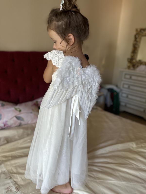 Саяткова сукня, якісна, паєтки перламутрові, нижня тканина сяє благородними блискітками. Дуже якісне кружево, позаду завязується бант. Нове купували 1700 грн. Стан ідеальний, вдягали 1 раз