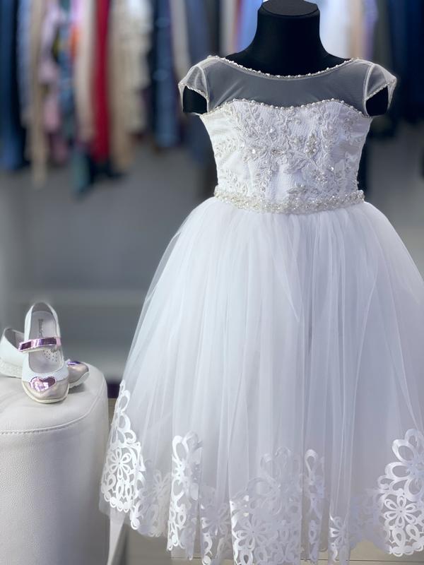 Платье украшено бисером, жемчужинами и кружевом Размер 98-104 см На худи девочку
