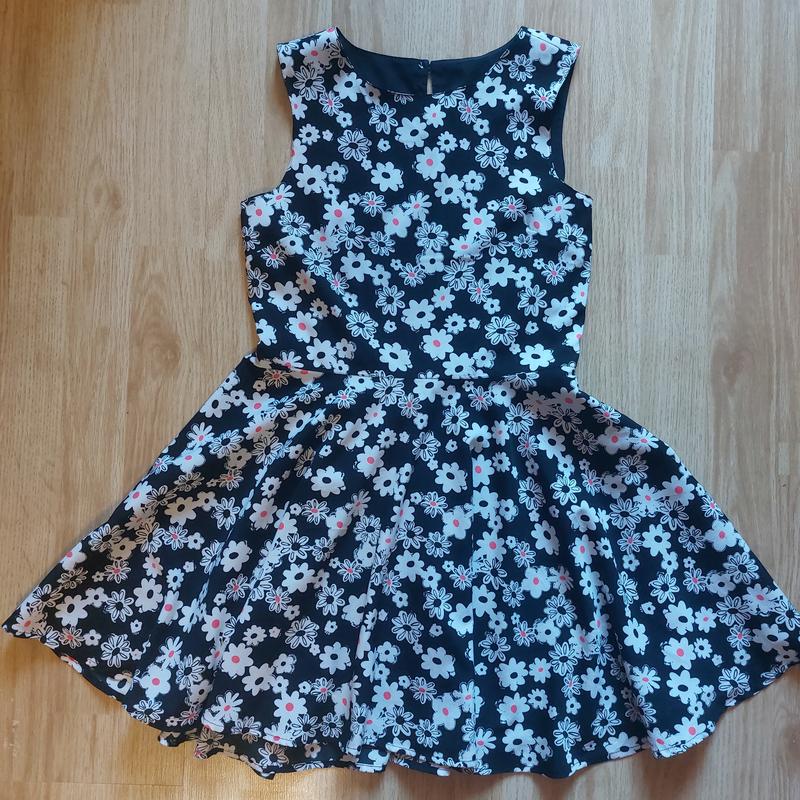 Гарне плаття, є підкладка. Спідниця сонцекльош. Дефектів, нюансів немає. Довжина по спині 73, під пахвами 39.