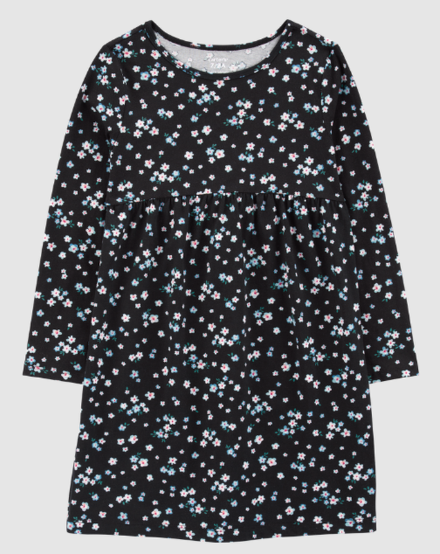 Трикотажне плаття для дівчинки. З довгим рукавчиком. Прикрашено принтом. Склад: 100% бавовна. Розмір Довжина сукні по спинці, см Ширина під ручками, см Довжина рукавчика від горловини, см 6-6X років 62 32 45 7 років 66 35 48 8 років 68 38 51 12 років 74 40 56