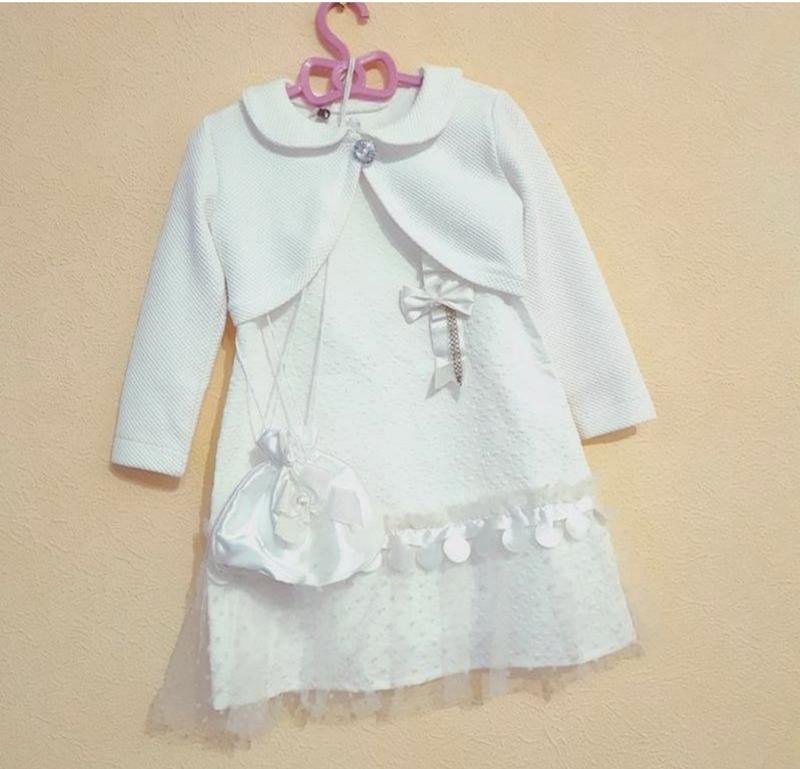 Стан чудовий! Без дефектів. Красиве, ніжне, приємне до тіла. Брошка знімна. Колір шампань, підклада бавовна! На вік 3-5 років. Заміри плаття: довжина 51 см + 2 см фатин, груди 28 см. Болеро довжина 21 см, плечі 26 см, рукав 31 см.