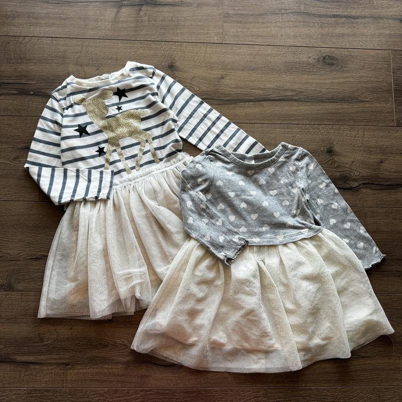 Класний набір суконь на вік 2-3 роки. Довжина 52 см, плечі 24,5 см, рукав 34 см.