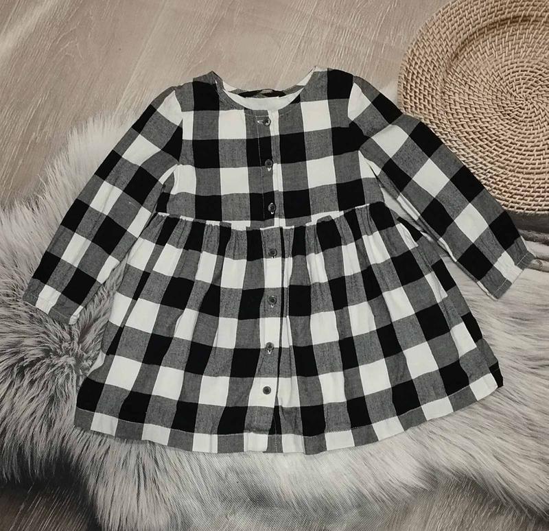 стильное платье в клетку, застегивается спереди на пуговике размер 86-92см замеры: носка 27см но талии 29см плечи 23см рукав 31см длина платья 46см