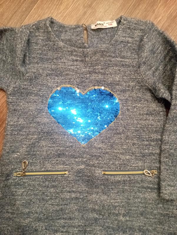 Тепле плаття на дівчинку.Прикрашене пайєтками у вигляді серця та кишенями із змійкою. Довжина -53 см.,рукав-38 см.