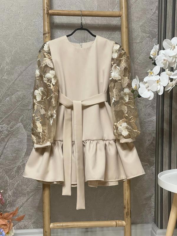 Неймовірно гарна та ніжна сукня Тканина креп костюмка і гіпюр Пояс в комплекті Можна носити з поясом і без заміри:пог/рукав/довжина 128/38/50/68 140/40/51/71 152/44/52/78 164/46/54/79 +-2см 128р-1 шт 140р-1 шт 152р-1 шт 164р-1 шт