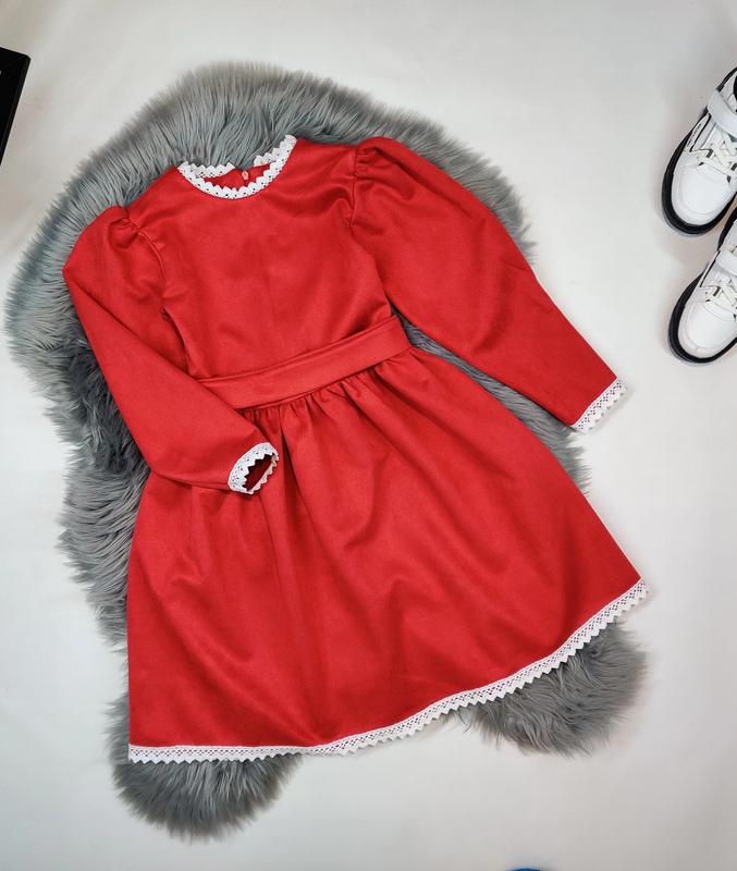 ток ❤️🔥НОВИНКА❤️🔥 ⭐️Чудова Сукня з мереживом пояс в комплекті ⭐️Тканина замш ⭐️ заміри-довжина\пог\рукав від плеча 13472\34\44 152-80\38\49