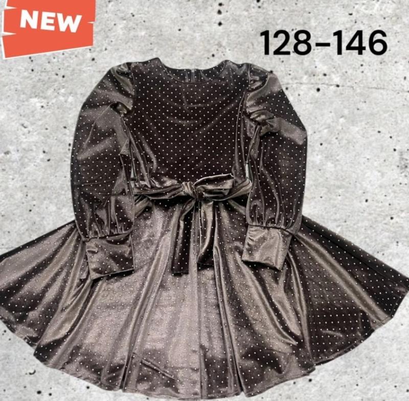 Стильна велюрова сукня По спинці застібається на блискавку, поясок в комплекті. Тканина - велюр оксамит із крапинкою, м'якенька та ніжна. Заміри: 128 довжина - 70см, напівобхват грудей - 30см, рукав від плеча - 52см. 134 довжина - 73см, напівобхват грудей - 32см, рукав від плеча - 54см. 140 довжина - 75см, напівобхват грудей - 35см, рукав від плеча - 56см. Мс